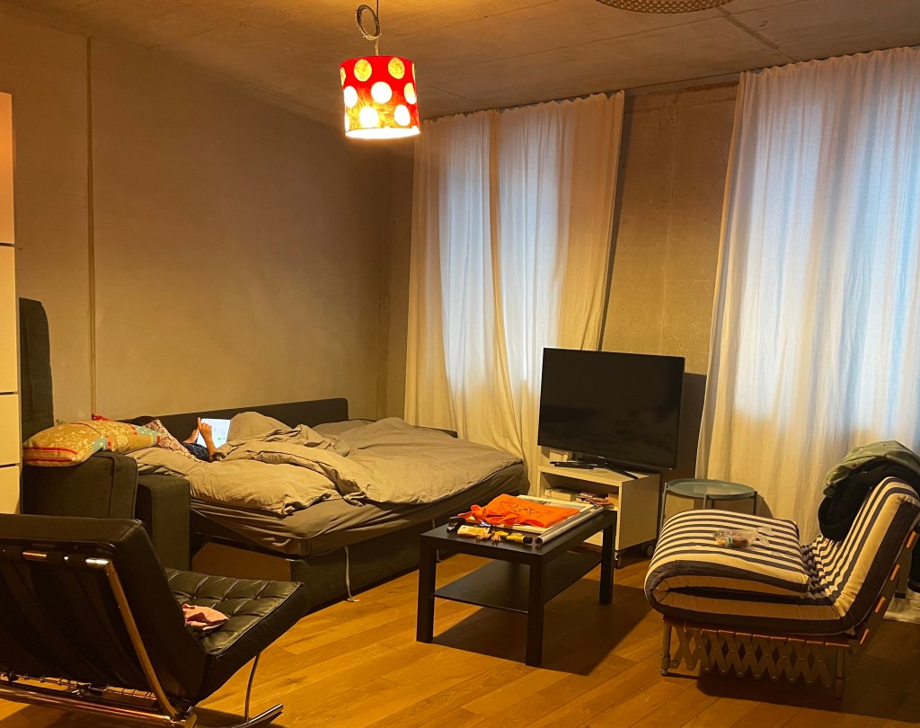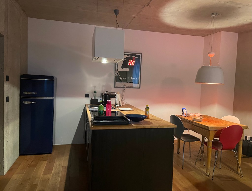 Mit dem Taxi statt wie geplant mit der U-Bahn fuhren L und ich zu unserer Airbnb-Unterkunft, die in einer ruhigen Seitenstraße unweit des Kolumbusplatzes gelegen ist. Wir wurden sehr nett vom Vermieter empfangen. Dieser zeigte uns das Studio mit Küchenzeile und Badezimmer.