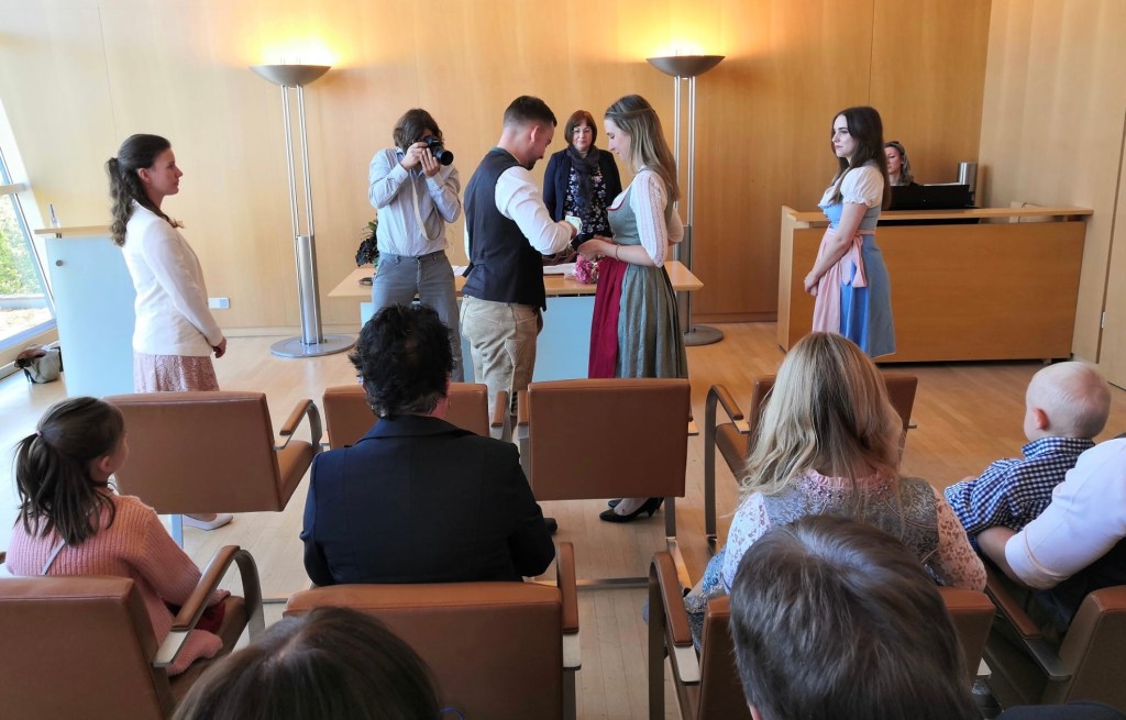 Kurz nach halb elf waren fast alle Gäste, die an der Trauung im Standesamt in München teilnahmen, dort eingetroffen. Mein Bruder, J und einige andere Gäste trugen ihre Tracht, der Rest, zu dem L und ich gehörten, festliche Kleidung.