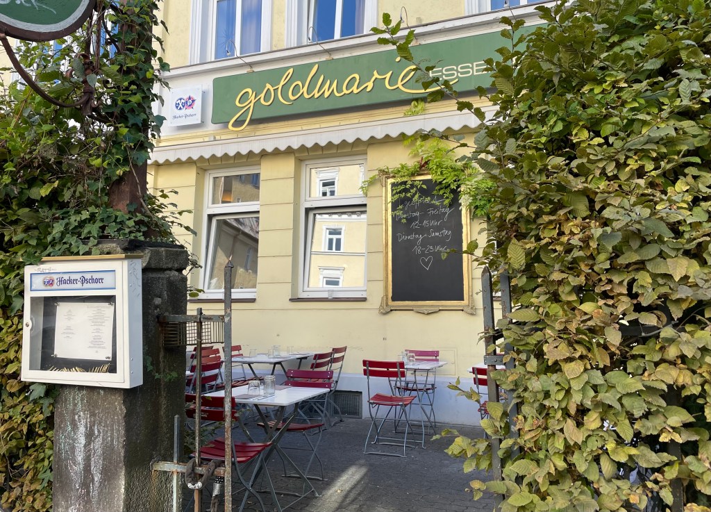 Im Restaurant „Goldmarie“ gingen wir anschließend Mittagessen. Ich dachte lediglich bei meiner Vorspeise, einem leckeren Kräutercouscoussalat, daran, ein Foto zu machen. Der Hauptgang und das kleine Dessert waren ebenfalls sehr gut.
