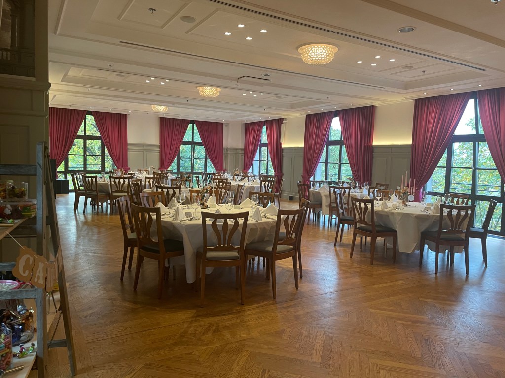 Die Tanzfläche und somit die Zeit der ausgelassenen Party wurde Viertel vor elf vom Brautpaar mit einem sehr professionellen Walzer mit verschiedenen Elementen freigegeben. Der Tanz war wunderschön anzusehen und jede*r merkte, dass das Brautpaar seit einigen Monaten einmal wöchentlich zum Tanzen geht.