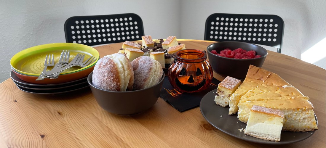 Gegen Mittag fuhren L und ich mit dem Auto zum Einkaufen. Wir kauften im Supermarkt einige Lebensmittel ein und holten danach beim Bäcker (viel zu viel) Kuchen.