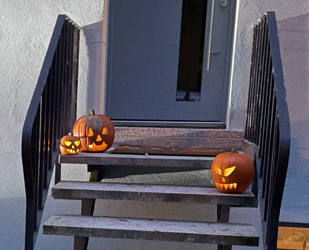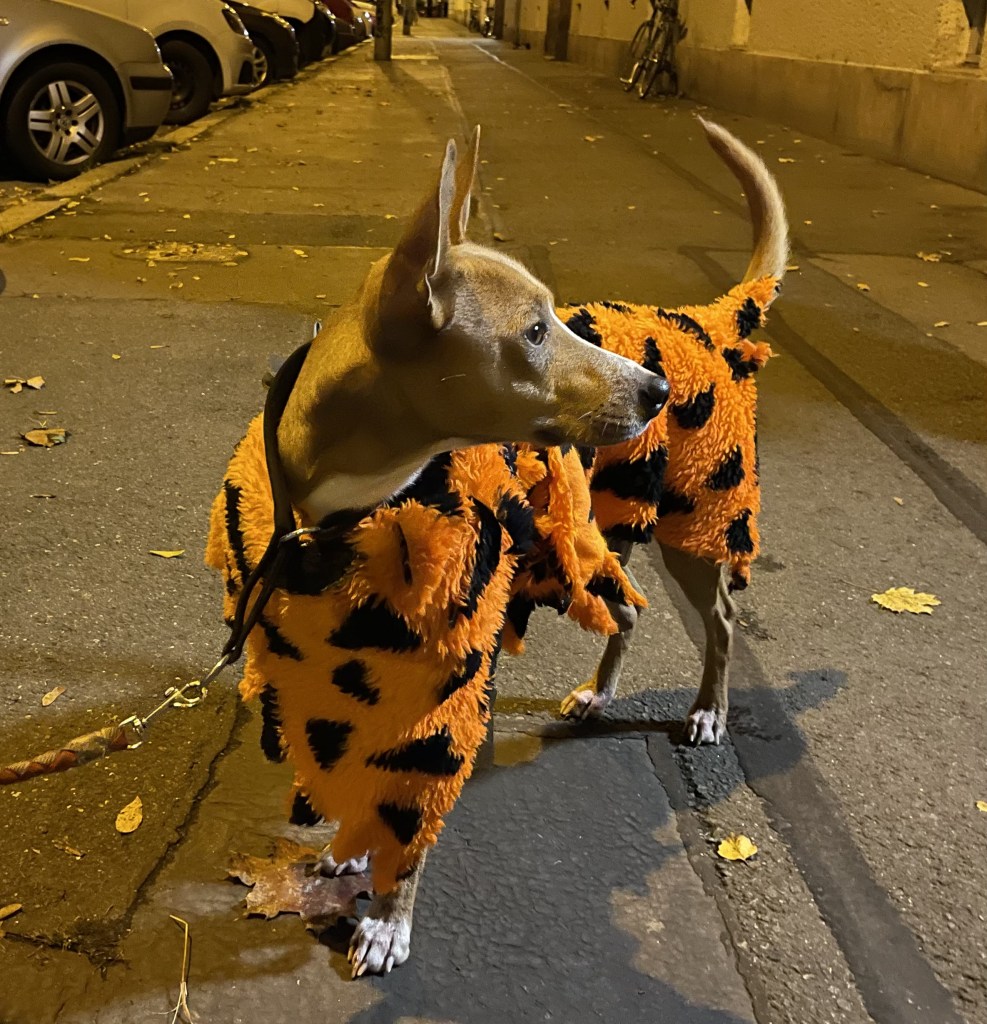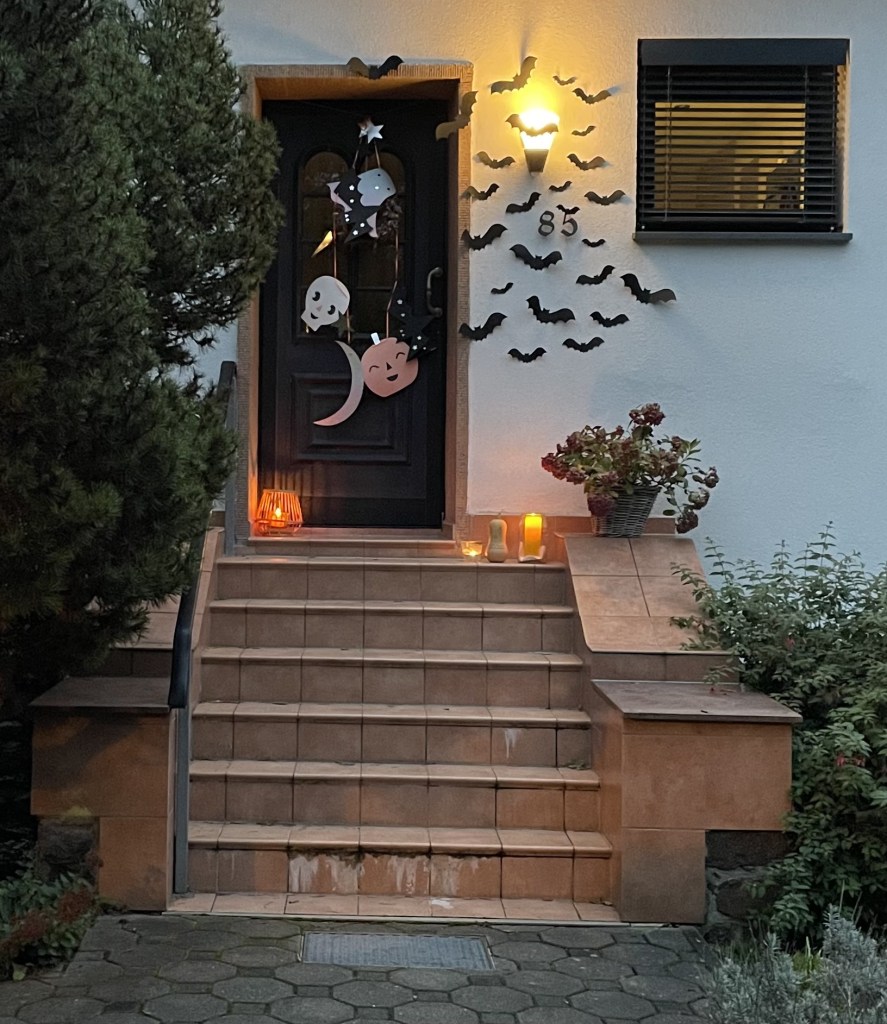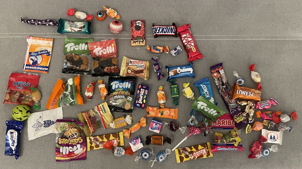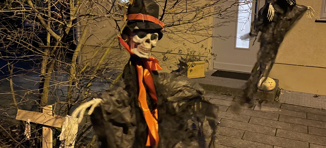 Am Nachmittag fuhr ich mit einer als Wednesday Addams verkleideten L nach Leipzig. Dort trafen wir uns mit einer anderen Schulfreundin L, ihrer Mama S und Hund Sukhi. Gemeinsam machten wir uns in einem halloweenbegeisterten Wohngebiet auf die Suche nach Süßem und wurden schnell fündig. Die Kinder hatten Unmengen Spaß daran, ihren Spruch aufzusagen und dafür mit Leckereien belohnt zu werden. Ich freute mich über die zusätzliche Bewegung am Abend und die nette Unterhaltung mit S.