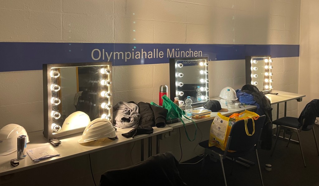 Zu fünft machten wir uns mit dem Taxi auf den Weg in die Olympiahalle und ließen uns von meinem sehr aufgeregten Bruder den Backstagebereich und die Bühne zeigen.