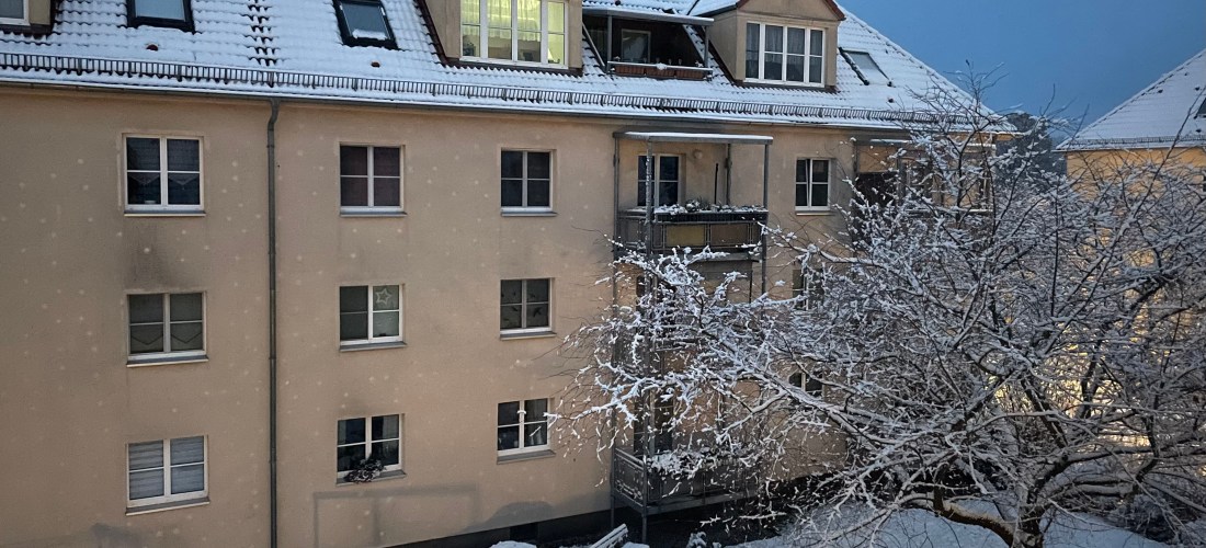 Gestern Abend hatte es wieder zu schneien angefangen. Als ich nach dem Aufstehen aus dem Fenster schaute, war alles wunderbar weiß. Ich freute mich, die Wohnung erst mal nicht verlassen zu müssen, denn die Straße vor dem Haus sah ziemlich rutschig aus.