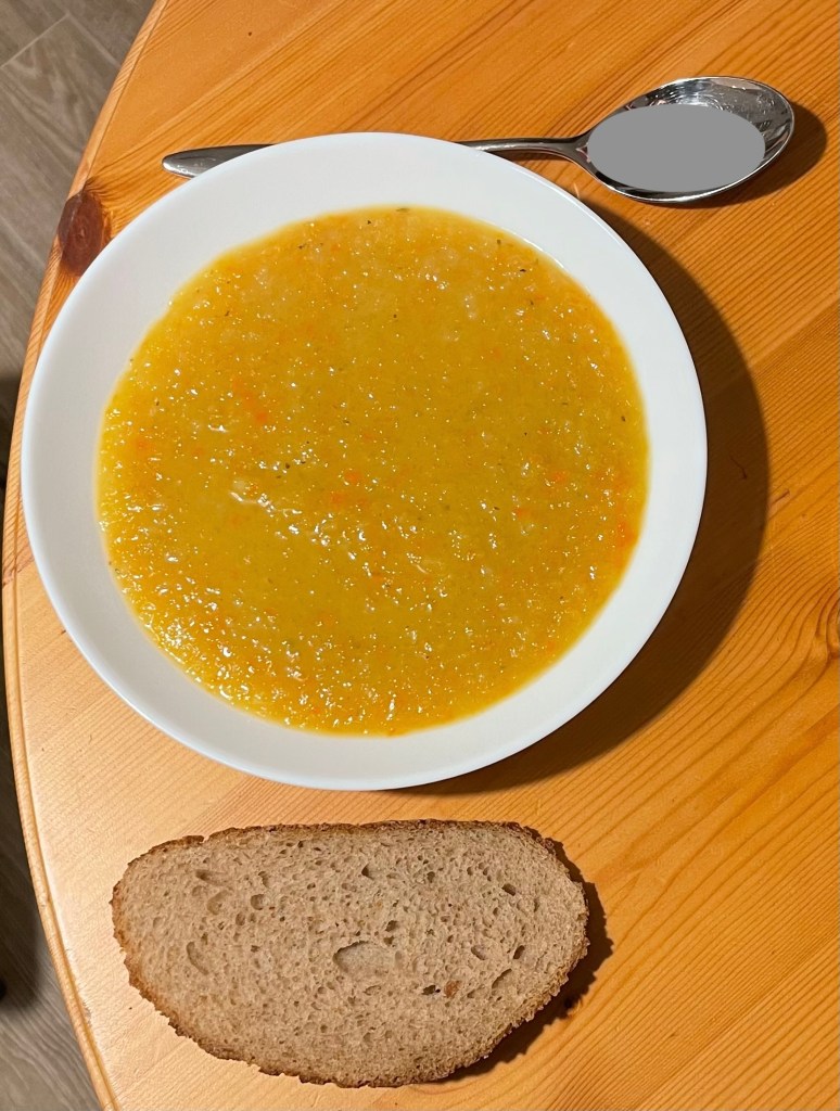 Dank des am Abend noch wirkenden Schmerzmittels war ich sogar in der Lage, L und mir eine Kartoffelsuppe im Thermomix zuzubereiten. Es ist viele Jahre her, dass ich das gemacht habe. Die Suppe war lecker. Auch L hatte nichts zu meckern.