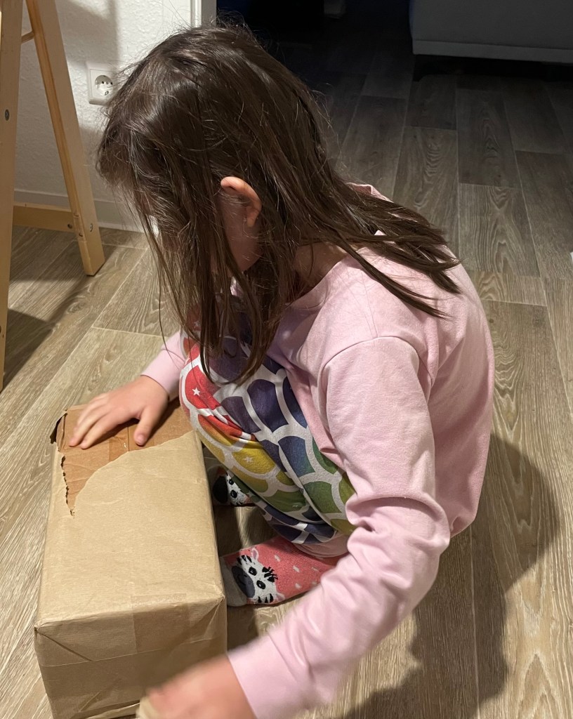 Kaum waren wir in der Wohnung angekommen, spielte L weiter mit ihren Geschenken.