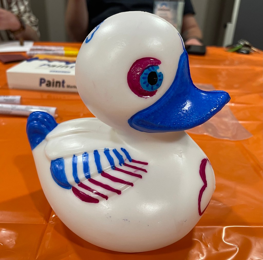 Den halben Arbeitstag verbrachte ich im Erfurter Büro. Heute starteten wir in die Gehaltsverhandlungen mit allen Mitarbeitenden. Nach dem Mittag fand unser Teammeeting statt. Da am kommenden Samstag das Entenrennen stattfindet, durfte sich das Team kreativ ausleben und die fünf Enten, die für unsere Firma ins Rennen gehen werden, bemalen.