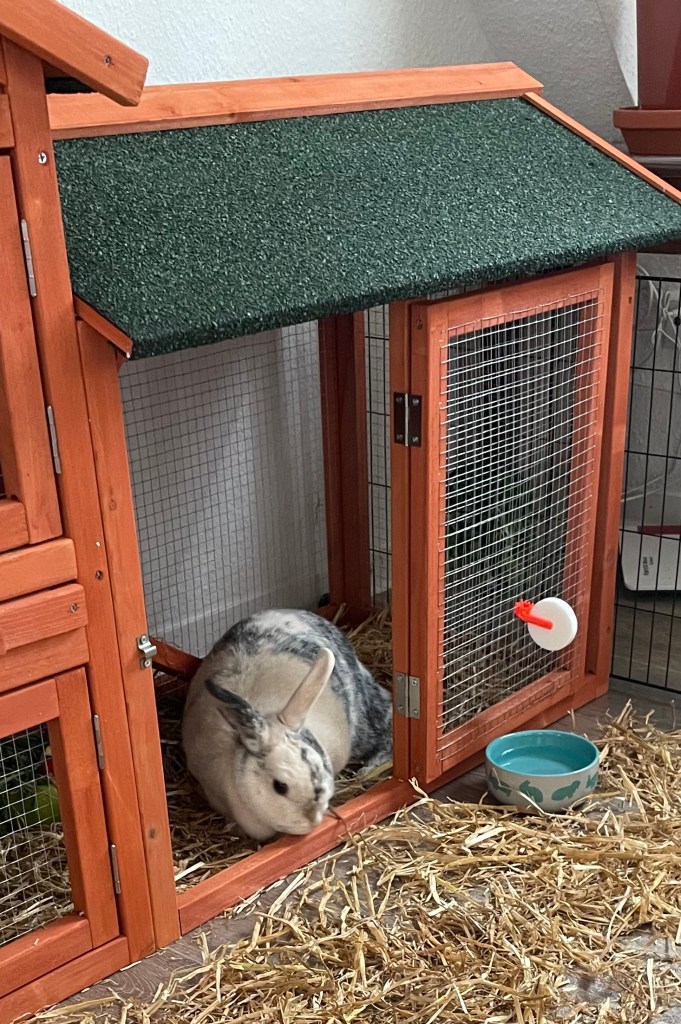 Nachmittags machte ich mich auf den Weg ins Tierheim, um Elli und Waltraud, zwei super niedliche Zwergwiddermädchen abzuholen. Nach Zahlung der Schutzgebühr, die sich pro Tier auf fünfzig Euro belief, fuhr ich mit den beiden im Auto zu uns nach Hause. Während der Fahrt konnte ich einen ersten Eindruck vom Charakter der Kaninchen gewinnen: Waltraud teilte mir sehr genau mit, was sie von der ganzen Situation hält, während Elli keinen Mucks von sich gab.