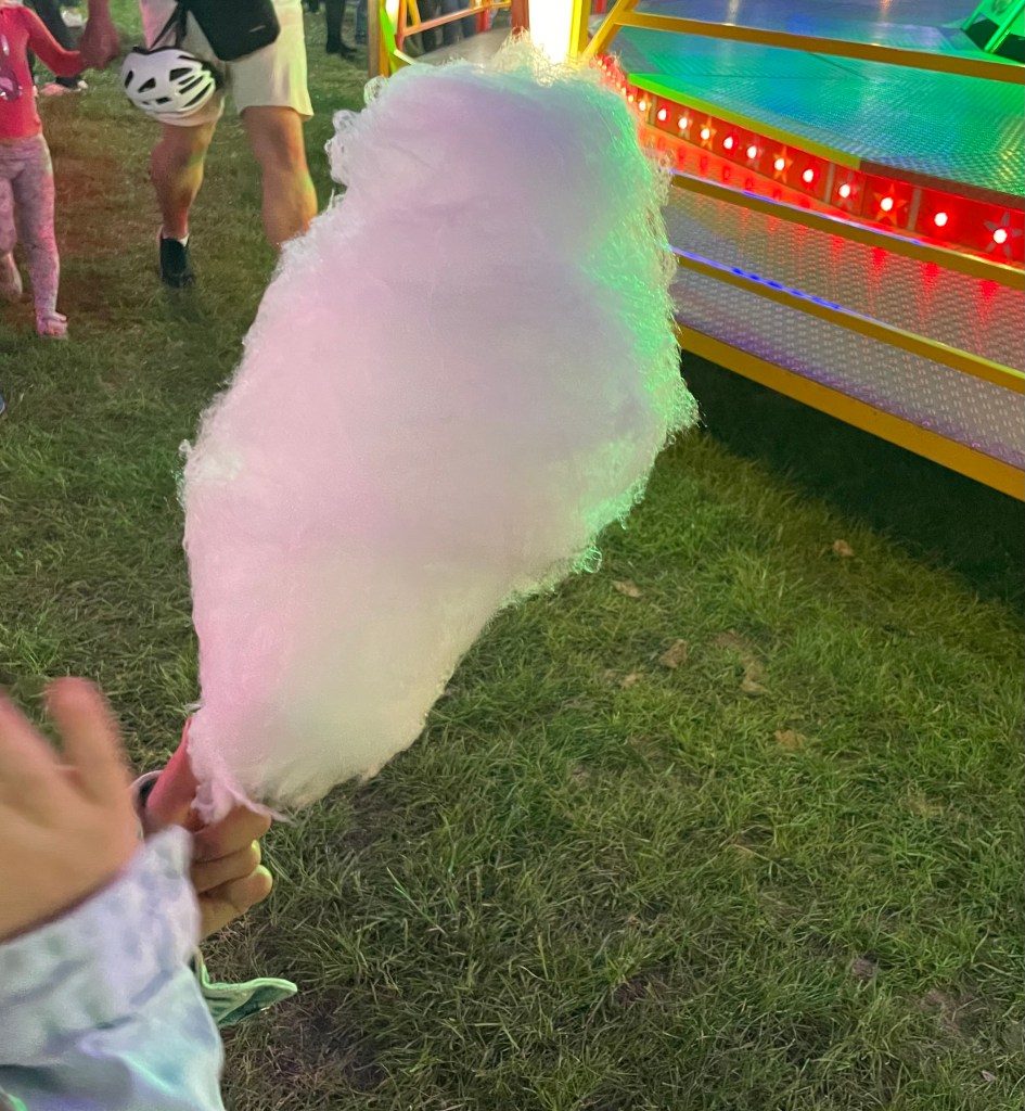 Zum Frühstück aß ich Beeren-Schokomüsli mit Weintrauben, Erdbeeren und Pflanzenmilch, mittags bereitete ich mir eine Gemüsepfanne mit Chicken-Fleischersatz zu, zum Vesper aß ich ein Eis und abends holte ich L und mir etwas Leckeres auf dem Rummelplatz.