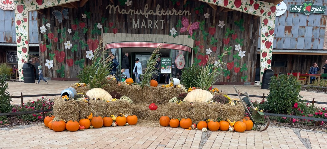 Gegen Mittag kamen wir nach einer etwa vierzigminütigen Autofahrt bei Karls Erdbeerhof in Döbeln an. Meine Eltern hatten bisher noch nie einen dieser Erdbeerhöfe betreten und waren über die Größe, den Aufbau und die zig Möglichkeiten, das Geld unters Volk zu bringen, erstaunt. Stück für Stück zeigten L und ich ihnen alles, was uns selbst gut gefällt. Wir nahmen ein kleines Mittagessen ein und teilten uns zu viert eine kleine Tüte Popcorn. Das Wetter war wesentlich besser als angesagt, sodass wir uns lange im Freien aufhalten konnten. So war es möglich, L auf dem Spielplatz spielen und mit einigen Fahrgeschäften fahren zu lassen. Bevor wir am Nachmittag wieder nach Hause fuhren, kauften wir Kleinigkeiten ein. Ich erstand endlich zwei Gewürzmischungen in Reagenzgläsern, die ich seit meinem ersten Besuch haben wollte. Eine neue Marmelade kaufte ich für uns ebenfalls.