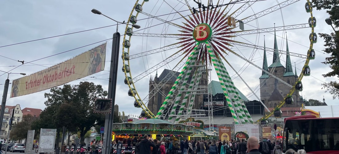 Am späten Nachmittag fuhren wir mit der Straßenbahn zum Domplatz und schlenderten mit unzählig vielen anderen Menschen über das Oktoberfest. L versuchte ihr Glück bei einigen Buden und entschied sich fast überall für ein kleines Kuscheltier. Weil ich recht ängstlich bin und mir zudem bei nahezu jedem Fahrgeschäft übel wird, musste ich sie leider enttäuschen und eine Fahrt mit der Achterbahn ablehnen. Auf die Geisterbahn traute sie sich nicht.