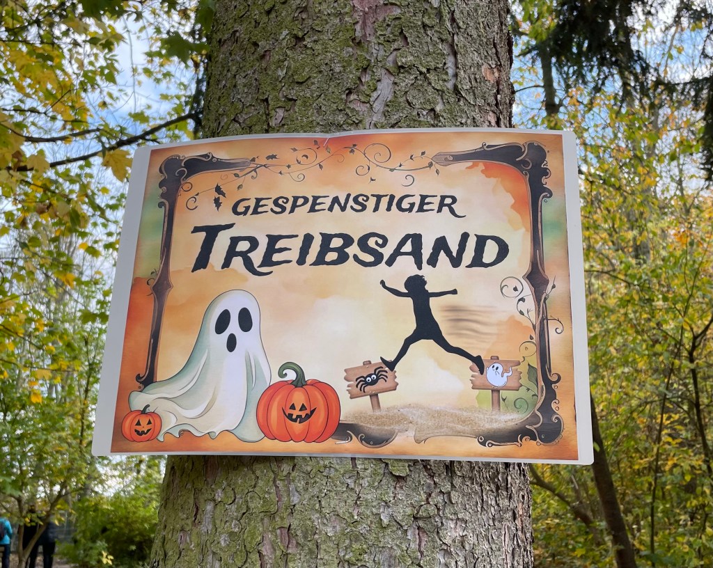 Mittags trafen wir uns mit Ls Schulfreundin EB und Leipzig-A in der Stadt und fuhren gemeinsam in den Tierpark Lützen. Dort war wunderschön und gruselig-schaurig dekoriert. Über den Park verteilt standen sechs Mitmachstände, an denen sich die Kinder nach einer entsprechenden Aktion einen Stempel abholen konnten. Am Ende gab es eine kleine Überraschung in Form einer Süßigkeitentüte. Ponyreiten durften die beiden auch.