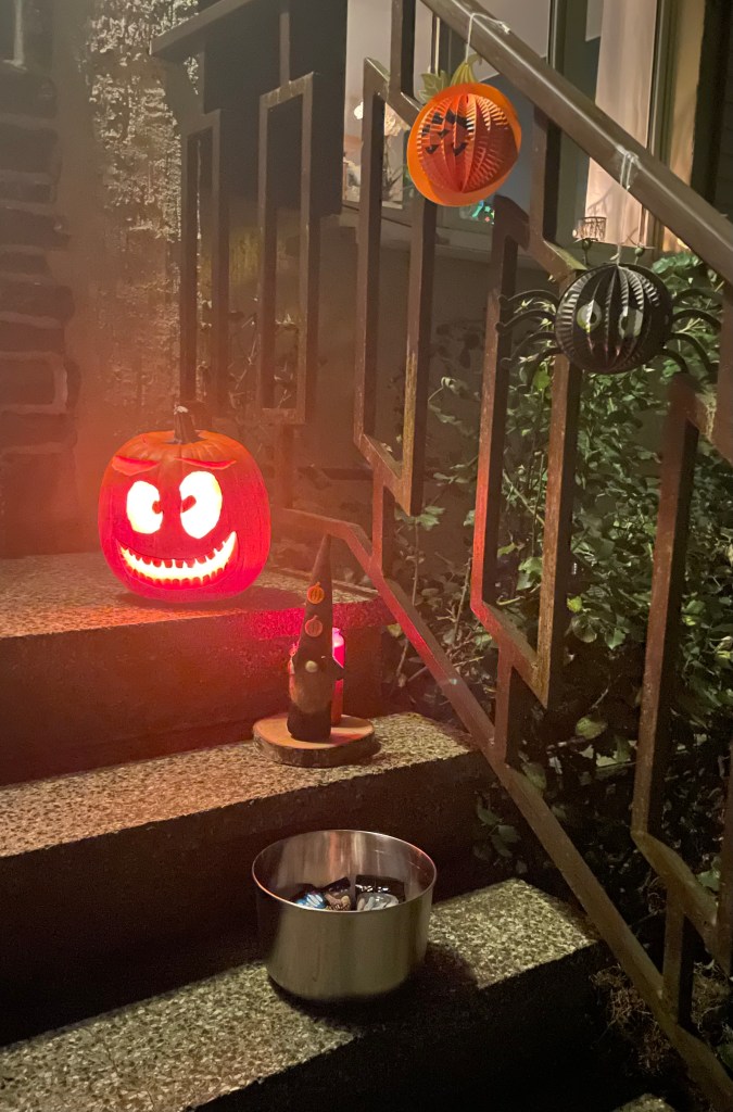 Am Abend trafen wir uns mit Ls Schulfreundin CE, ihrer Schwester, CEs Eltern und deren Besuch, um gemeinsam um die Häuser zu ziehen und noch mehr Süßigkeiten abzustauben. Die Kinder hatten unglaublich viel Spaß und rannten freudig von Haus zu Haus. Ich freute mich über besonders hübsch geschmückte Eingangsbereiche.