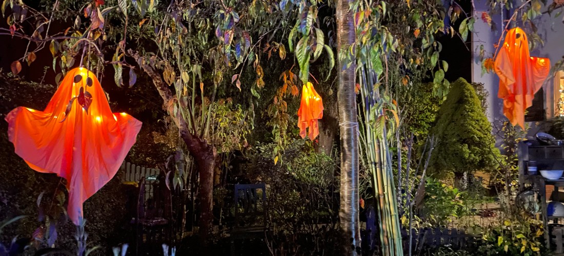 Am Abend trafen wir uns mit Ls Schulfreundin CE, ihrer Schwester, CEs Eltern und deren Besuch, um gemeinsam um die Häuser zu ziehen und noch mehr Süßigkeiten abzustauben. Die Kinder hatten unglaublich viel Spaß und rannten freudig von Haus zu Haus. Ich freute mich über besonders hübsch geschmückte Eingangsbereiche.
