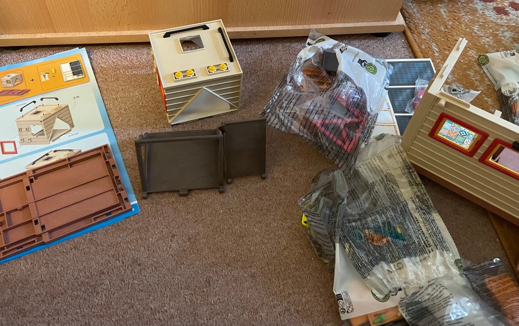 Während Elli und Waltraud im Flur hoppelten und den neu aufgebauten Kaninchenparcours erkundeten, baute ich für L das Playmobil Tiny House auf, das sie am Vorabend vom Weihnachtsmann geschenkt bekommen hatte. Die Kaninchen hatte ich dabei immer im Blick.