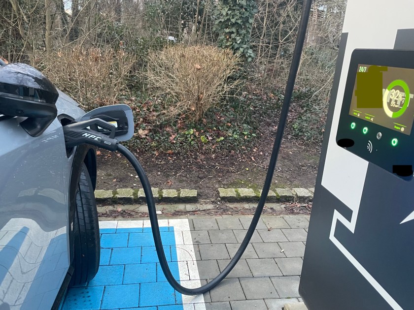 Heute steuerte ich erstmals eine Ladesäule an. In den ersten zehn Sekunden merkte ich, dass sämtliche Ängste und Sorgen der letzten Tage völlig sinnlos waren. Der Automat ist idiotensicher und niemand kann auch nur irgendwas falsch machen. Auch ich nicht. Das Auto wurde von 31 Prozent auf 93 innerhalb einer Stunde geladen. Ich arbeitete in der Zeit, kurz unterbrochen von kleinen Spaziergängen nach Hause und zur Ladesäule.
