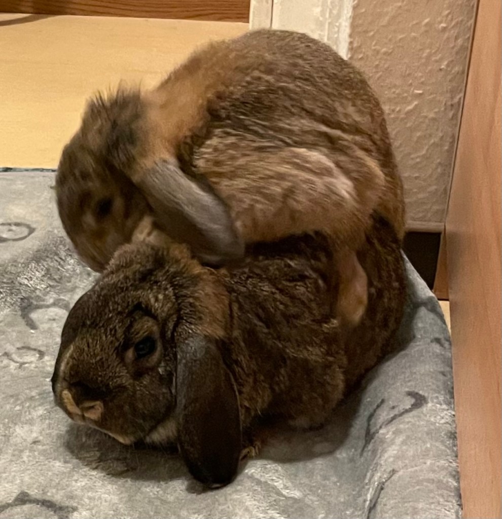Da unsere drei Kaninchen in der Wohnung meiner Eltern aus Platzgründen nicht frei herumhoppeln können, bauten wir ihnen vormittags und abends im Flur einen Parcours zum Spielen und Toben auf.