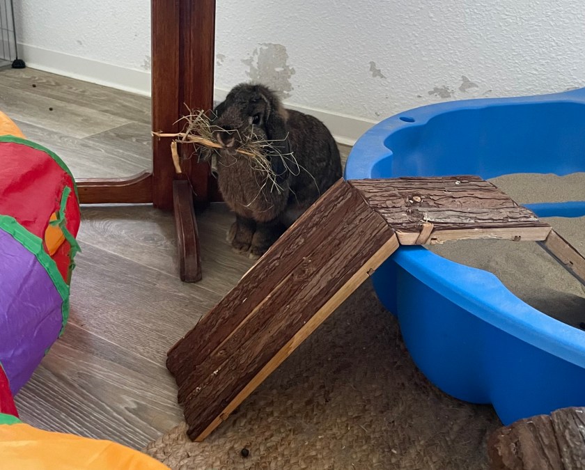 Unsere kleine Gerda scheint eine Scheinschwangerschaft zu durchleben. Heute Vormittag rannte sie wieder mit Heu und Stroh im Maul durch die Wohnung auf der Suche nach einer geeigneten Stelle, um ein Nest zu bauen.