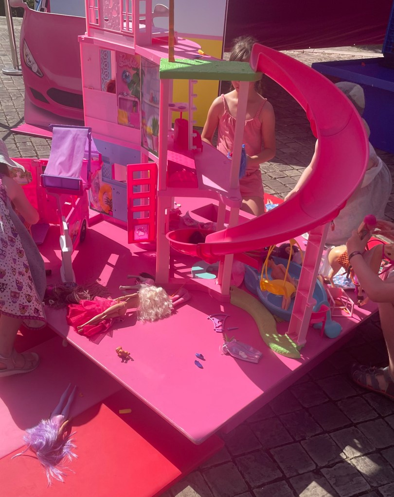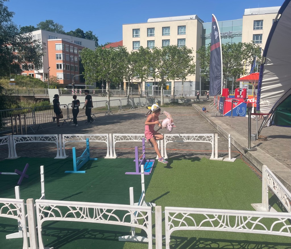 Am Nachmittag besuchten wir mit den Kindern die Toggo-Tour, die an diesem Wochenende auf dem Theaterplatz in Erfurt gastierte. Hier und da schaute L in ein Zelt hinein. Alles in allem hatte ich aber das Gefühl, dass sie mit ihren neun Jahren nicht mehr zum Zielpublikum gehört. Der brütenden Hitze und den kaum vorhandenen schattigen Plätzen entkamen wir eine gute Stunde später.