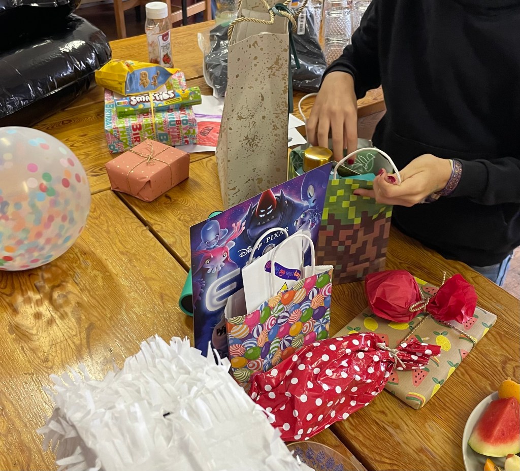 Bis zum Einbruch der Dunkelheit blieben wir auf LKs Party anlässlich ihres zehnten Geburtstags. Es gab leckeren Kuchen und Kekse, Karaoke, Zeit zum Geschenke verstecken, suchen und auspacken, Piñata schlagen, ein großes Abendbuffet und über der Feuerschale gegrillte Marshmallows.