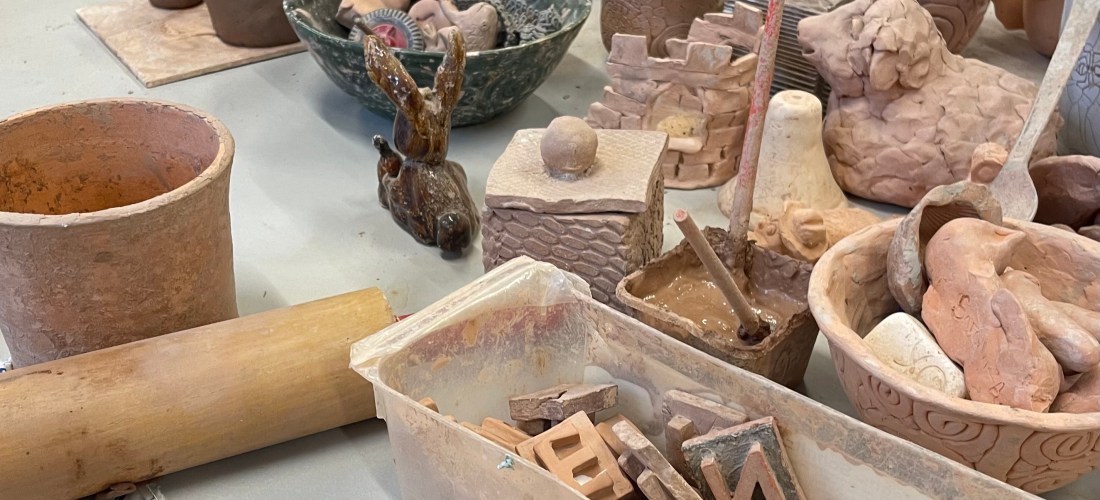 Nachmittags holte ich neben L auch ihre beiden Freundinnen CE und ME mit von der Schule ab. Wir trafen uns wenig später mit Leipzig-J, der Mama von CE und ME. Gemeinsam gingen wir zum Töpfern. Zuerst schaute ich mich wegen Platzmangels nur um und assistierte L beim Bemalen ihrer getöpferten Sachen. Eine Stunde später konnte ich selbst aktiv werden. Das hat mir großen Spaß gemacht.