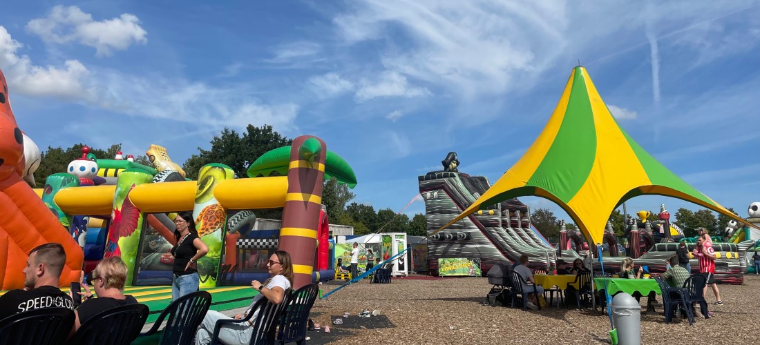 Zur späten Mittagszeit trafen L und ich uns in Hohenfelden mit meiner Schwägerin M und meinem Neffen M. Während sich die Kinder im Hüpfburgenpark austoben konnten, machten wir es uns im Schatten gemütlich.