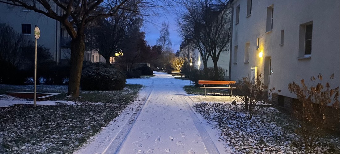 Ich habe sehr gut geschlafen, war morgens aber nicht motiviert genug, um gleich aus dem Bett zu springen. Ein Blick nach draußen zeigte eine verschneite und spiegelglatte Straße. Ich mag Schnee, aber nur, wenn ich Urlaub habe und ihn genießen kann.
