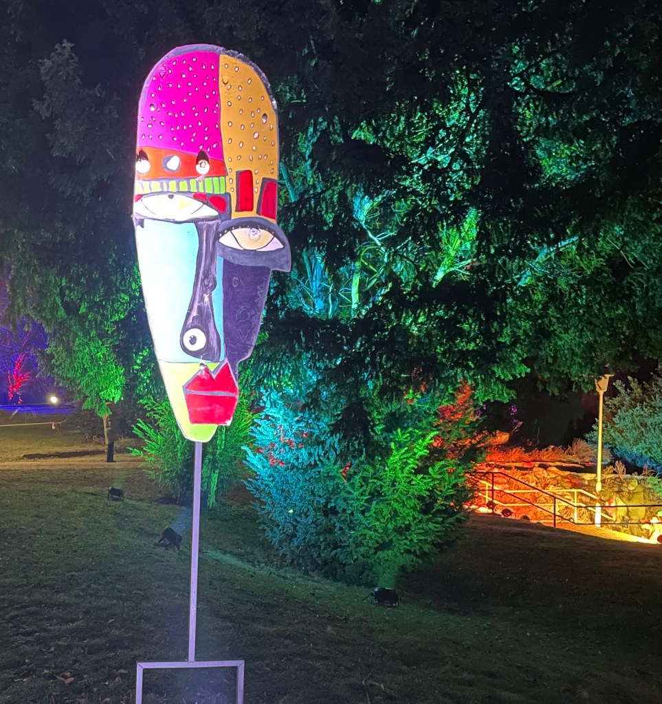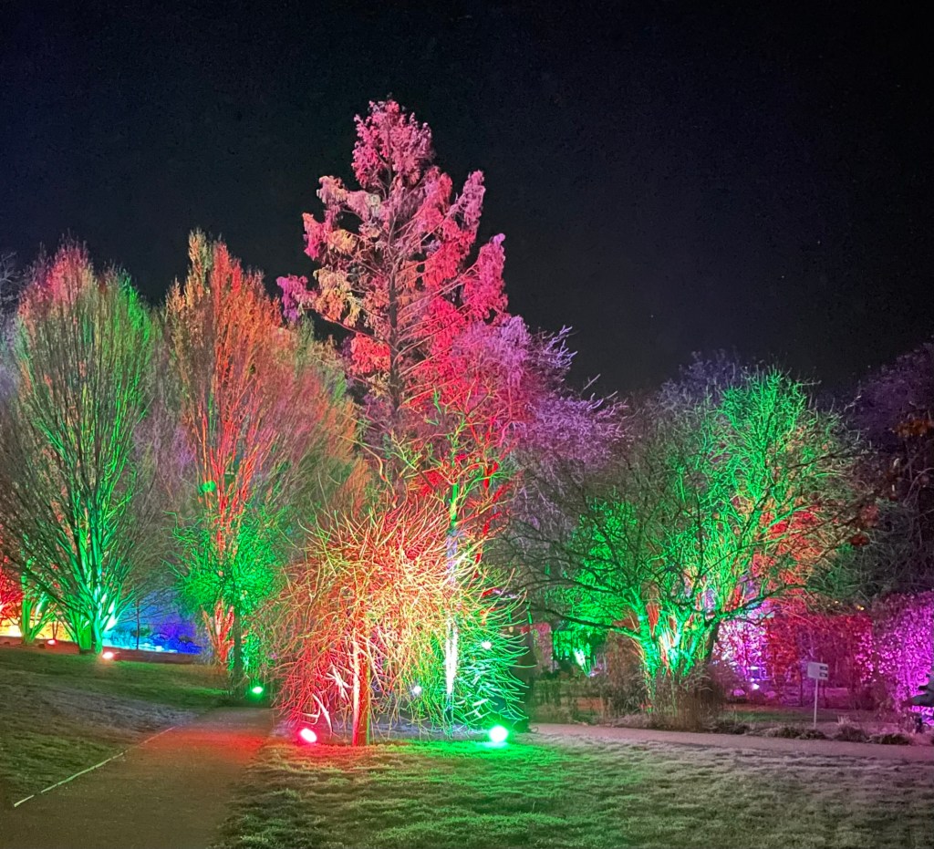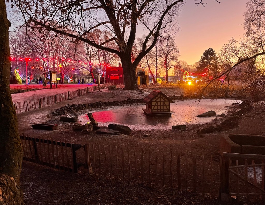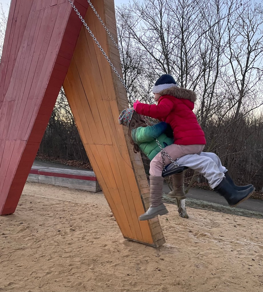 Spontan begleiteten L und ich am Nachmittag unsere ehemalige Vermieterin C und ihre Enkelkinder K und M in den egapark Erfurt. Zuerst wurde auf dem großen Spielplatz getobt. Anschließend liefen wir bei Dunkelheit herum und bestaunten die Winterleuchten.