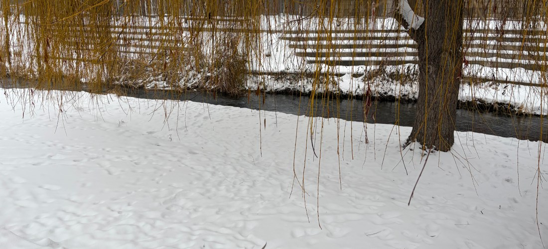 Im Vergleich zu gestern war es heute Mittag so warm, dass der gestern frisch gefallene und ein Großteil des zuvor festgefrorenen Schnees tauen konnte und die Straßen und Gehwege nun voller Matsch sind.