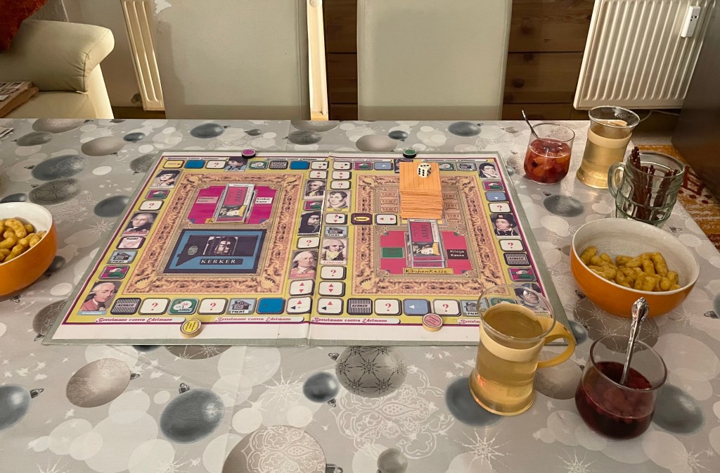 Danach las ich noch eine Weile in meinem Buch, ehe wir gemeinsam zwei Stunden lang ein von meinem Papa vor fünfundzwanzig Jahren erdachtes und entwickeltes Brettspiel spielten, bei dem L sehr große Freude am Vorlesen der Ereigniskarten hatte und ich letztendlich aufgrund des höchsten Postens und Ranges gewann.
