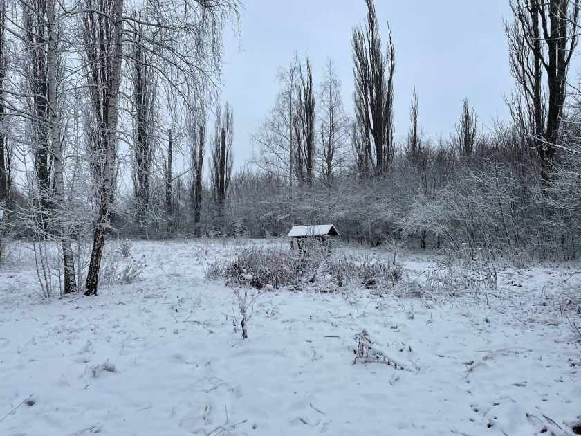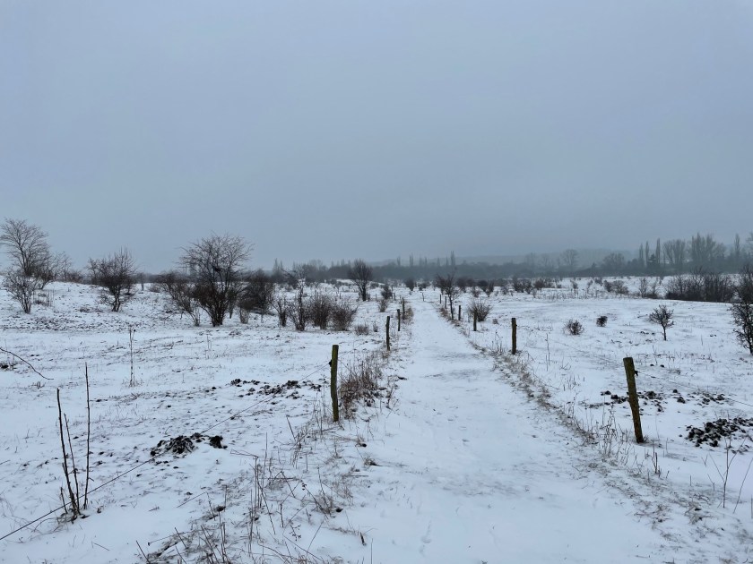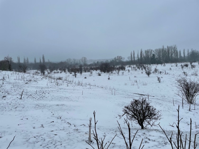 Am Samstag begann es leicht zu schneien. Da die Straßen aber noch frei waren, fuhren wir am frühen Nachmittag mit dem Auto nach Nohra und statteten den Wildpferden einen Besuch ab. Wir hatten Äpfel und Möhren dabei und verfütterten diese an ein Dutzend hungriger Tiere. Mehr bekamen wir nicht zu Gesicht. (Es leben circa einhundert Pferde dort.)