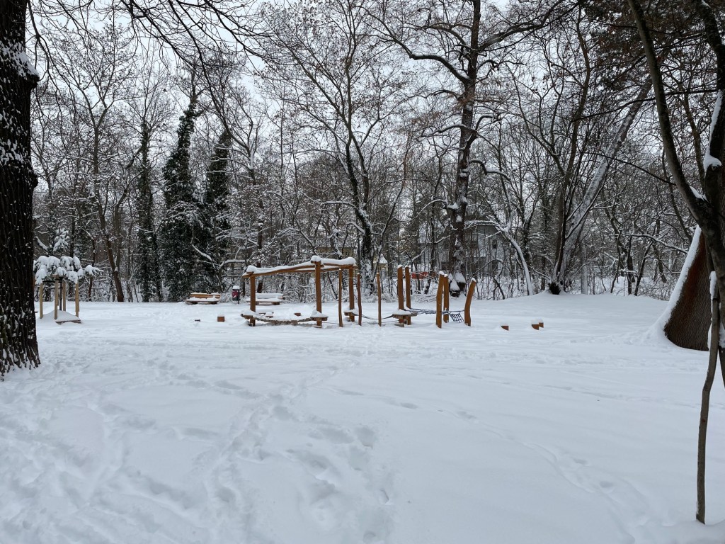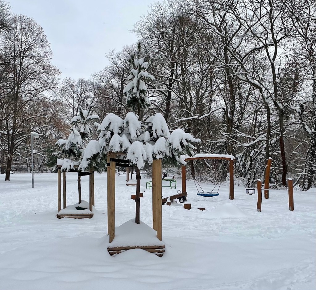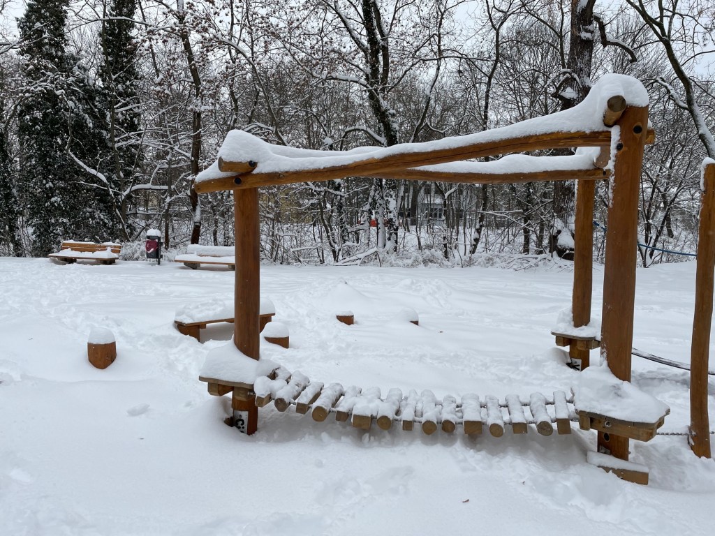 Am Nachmittag des zweiten Weihnachtsfeiertages machten sich unsere Vermieter C und A sowie U, E, K, L, mein Bruder und ich auf den Weg in den Wald zum Spielplatz. Zum Erhalt der guten Stimmung nahmen wir den Bollerwagen mit. (Beide Kinder schliefen auf dem Rückweg ein und mümmelten zwei Stunden lang eng aneinander gekuschelt. Das war schon sehr niedlich, auch wenn L an diesem Abend statt 22 Uhr erst kurz nach Mitternacht einschlief.)