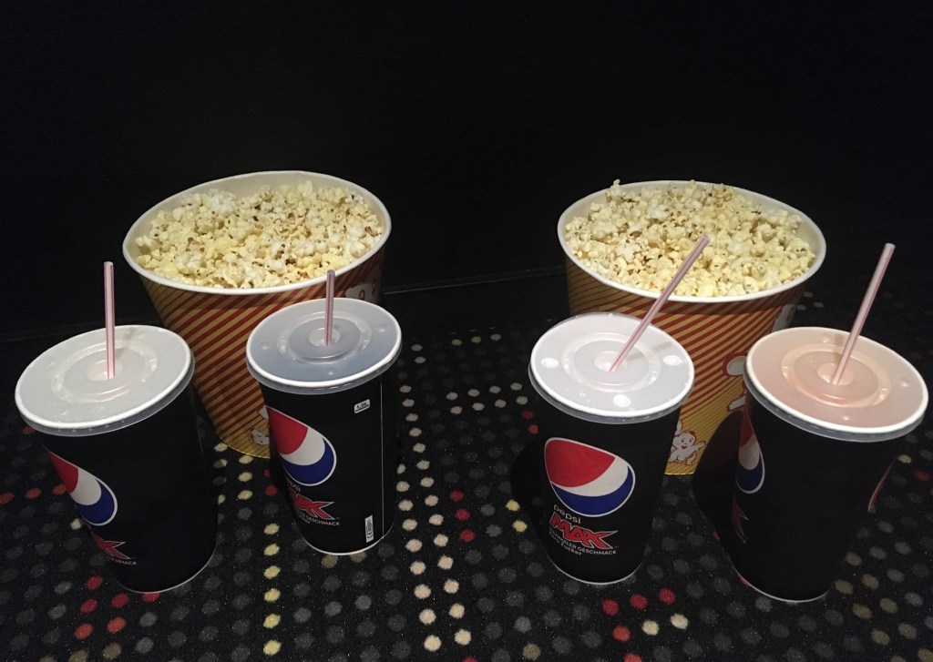 Da es vormittags Probleme mit der Online-Reservierung gab, fuhr ich am Nachmittag mit den drei Kindern T, J und L auf gut Glück ins Kino. Außer uns vieren schaute nur noch eine Mama mit ihrer Tochter den Film „Meine Freundin Conni – Geheimnis um Kater Mau“. Wir hatten somit Saal 1 des Kinos für uns alleine. Nach Kauf der Snacks dachte ich zuerst, ich hätte es ein wenig übertrieben, aber wir leerten sämtliches Popcorn noch vor Ende des Films! Das habe ich nicht erwartet. Der Film war sehr unterhaltsam.