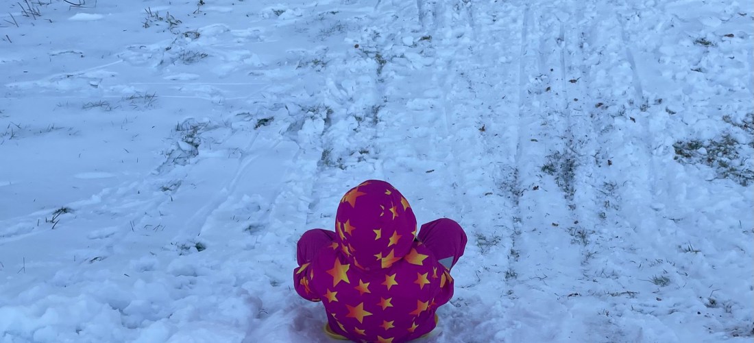 Nach dem späten Frühstück gingen L und ich dick eingemummelt mit unserem Schlitten und einem Popo-Rutscher zum kleinen Hügel hinter dem Wohnkomplex. Gemeinsam rodelten wir und blieben trotz der Kälte und des Windes fast eine Stunde lang draußen.