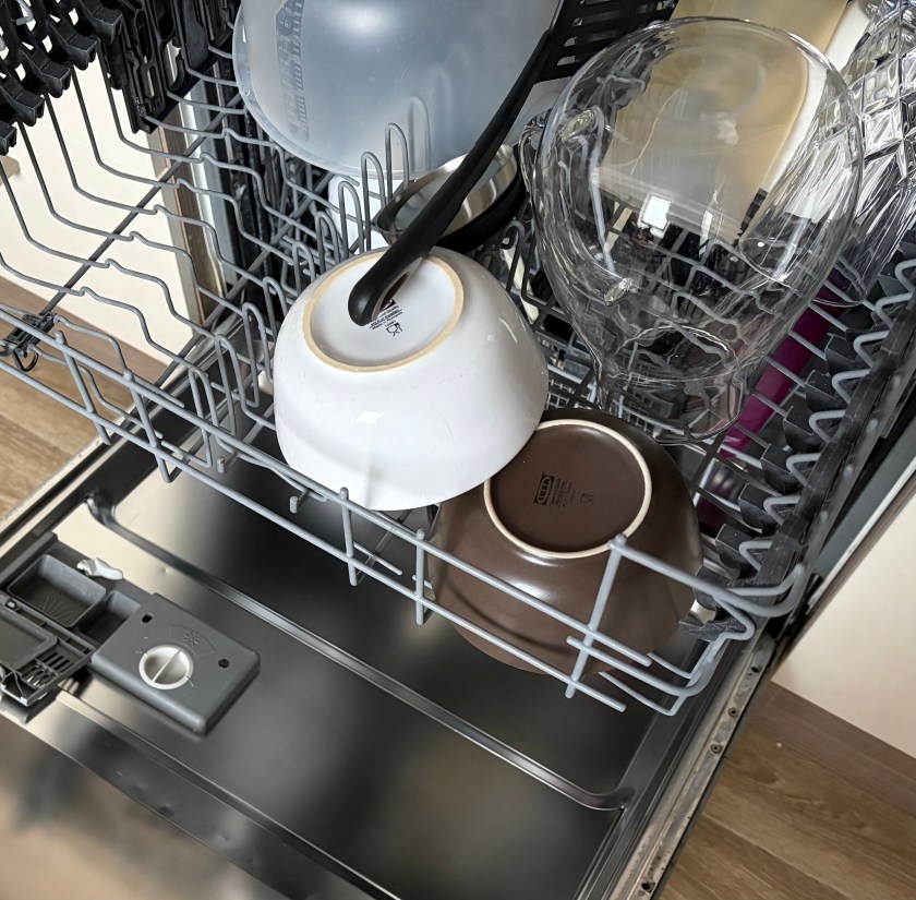 Gestern Abend hatte ich keine Lust mehr, den Geschirrspüler auszuräumen. Während ich mir heute Morgen mein Frühstück zubereitete, erledigte ich diese Aufgabe mit.