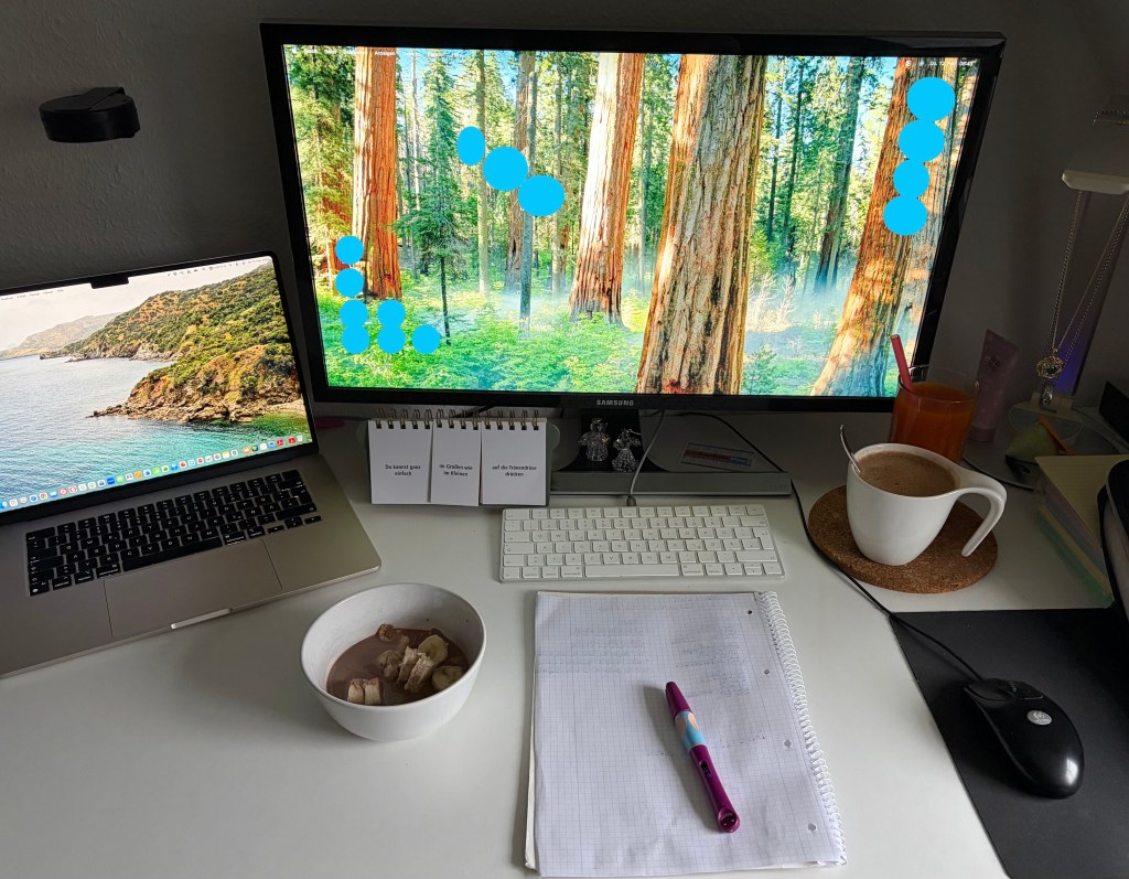 Halb neun startete ich in meinen Arbeitstag. Da ich zuvor drei Tage Urlaub hatte, sichtete ich sämtliche E-Mails und Slack-Nachrichten. Nebenbei aß ich mein kleines Frühstück. L verzog sich nach dem Aufstehen in ihr Kinderzimmer. Sie schaute zunächst eine Weile fern und spielte anschließend. Nach kurzer Zeit begann ich zu frieren. Wie sooft in den letzten Wochen saß ich am Vormittag mit einer Wärmflasche auf dem Schoß vor dem Rechner.