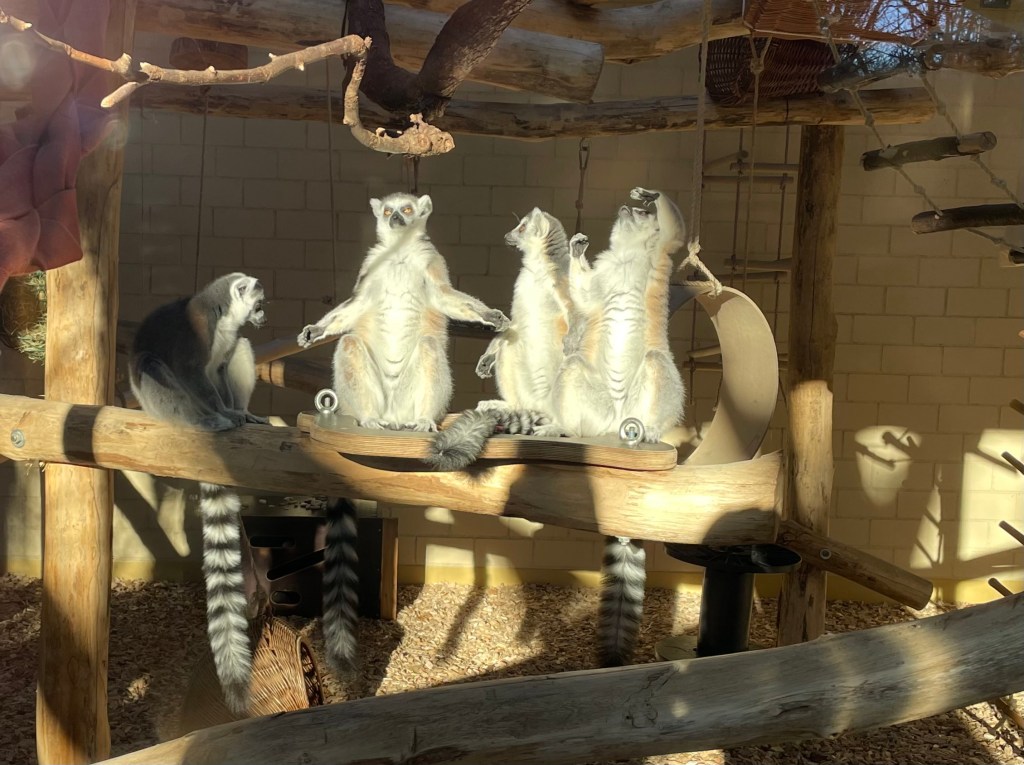 Mittags besuchten L und ich meine Schwiegermama. Nach dem Essen fuhren wir gemeinsam in unserem Mietauto zum Zoopark in Erfurt. Etwa anderthalb Stunden später gestellten sich auch meine Schwägerin M und mein Neffe M hinzu. Den gesamten Aufenthalt über schien die Sonne. Das tat uns allen sehr gut und zauberte rote Farbe auf unsere Wangen.