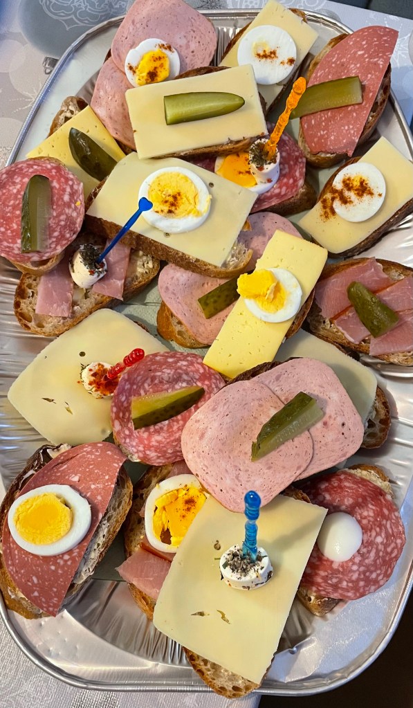 Gefrühstückt habe ich auch am ersten Tag im neuen Jahr ein Croissant mit Kräuterquark. Mittags aßen wir eine von meiner Mama zubereitete Fischsuppe und abends gab es die restlichen Speisen der letzten Tage.