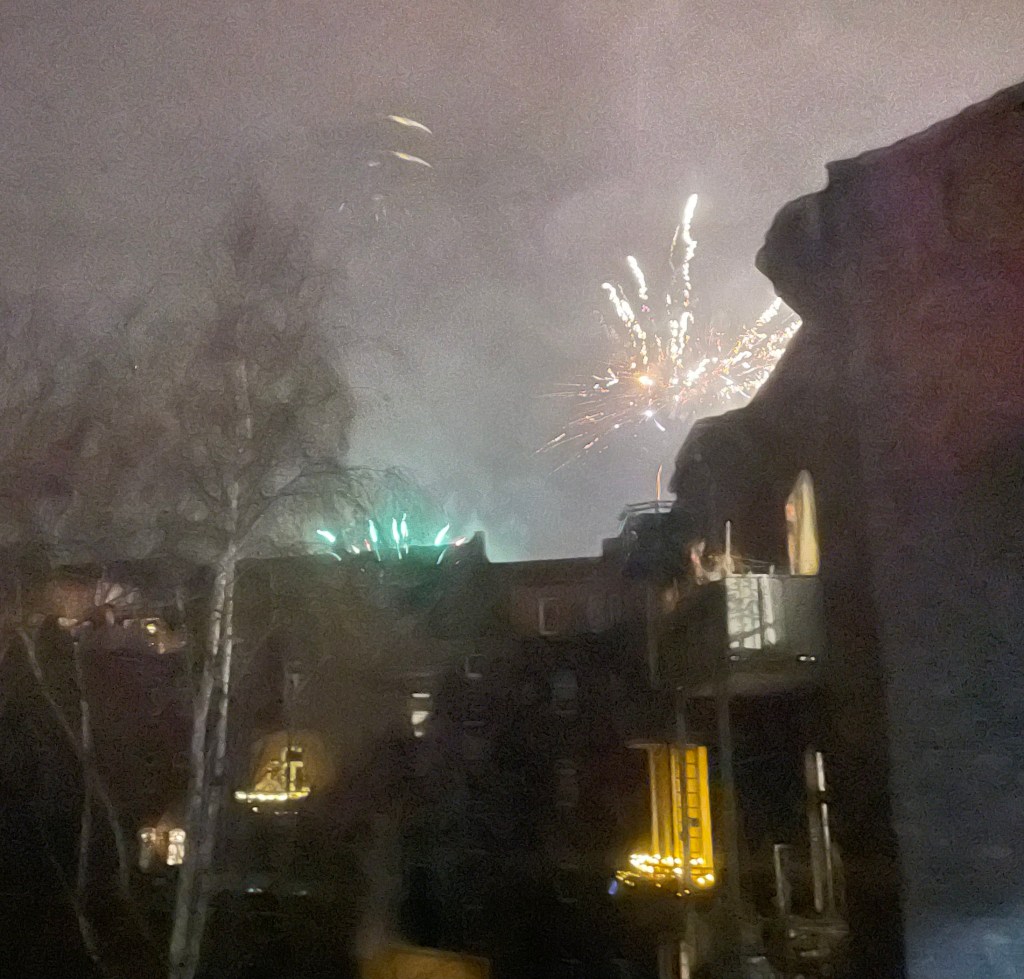 L, meine Eltern und ich sind gut ins neue Jahr gestartet. Nach dem Anstoßen um Mitternacht kuschelten wir mit Elli und Waltraud, die Angst vor den lauten Böllern hatten.