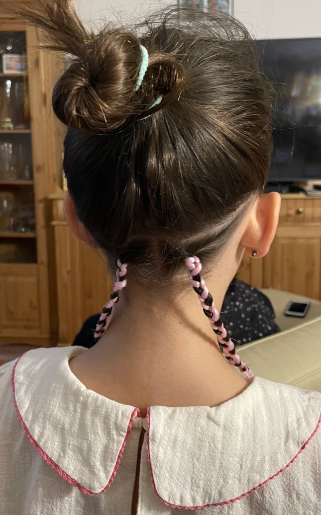 L gestand mir, dass sie seit einigen Tagen Kopfschmerzen wegen ihrer Braids hat. Besonders unangenehm sind diese nach dem Aufstehen. Schweren Herzens entschied sie sich dafür, dass ich ihr die zahlreichen Strähnen wieder entfernen soll, was ich bis zum frühen Mittag tat. Danach telefonierten wir mit meiner Schwiegermama.