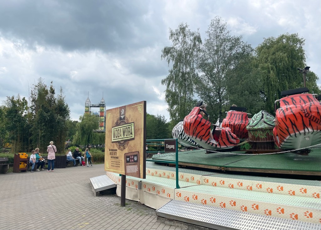 Im Nieselregen gingen wir für etwa anderthalb Stunden in den Park und fuhren unter anderem mit dem Fahrgeschäft Aqua-Safari. Die Kinder waren leider nur mittelgut gelaunt. Richtige Freude und Spaß kam nicht auf.