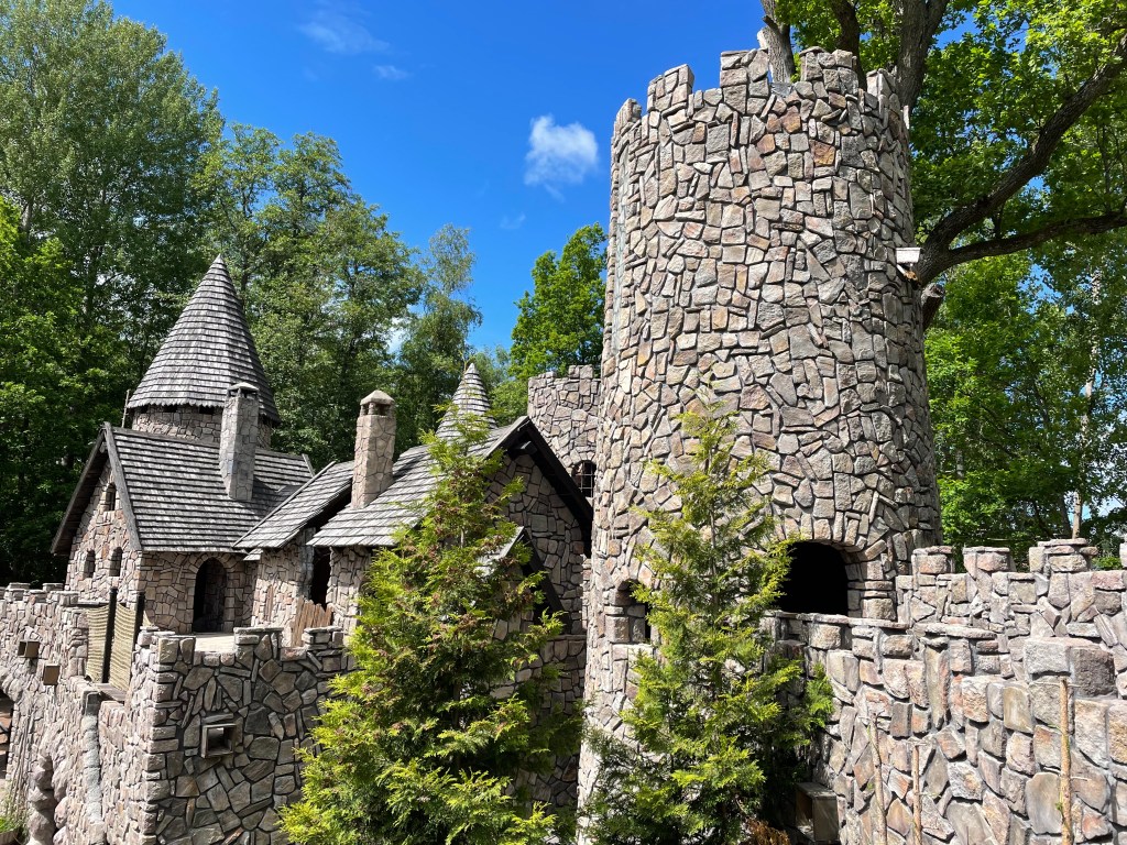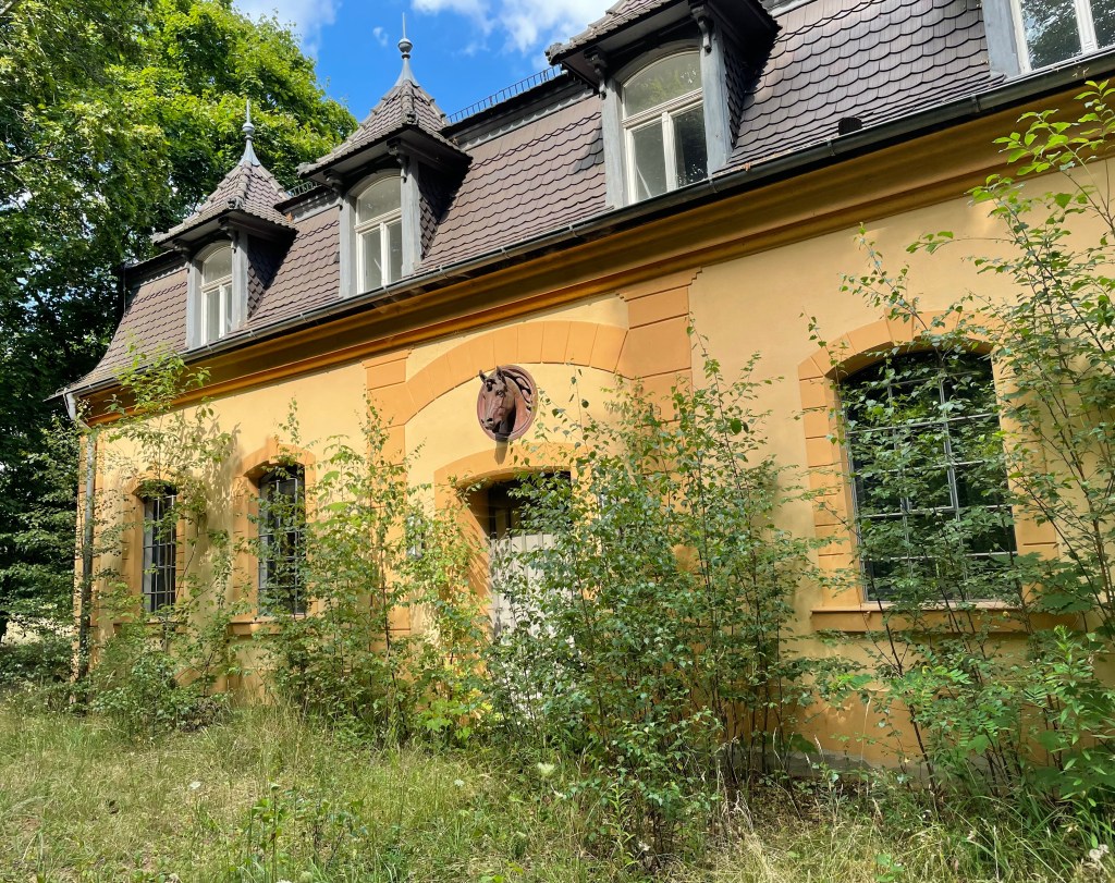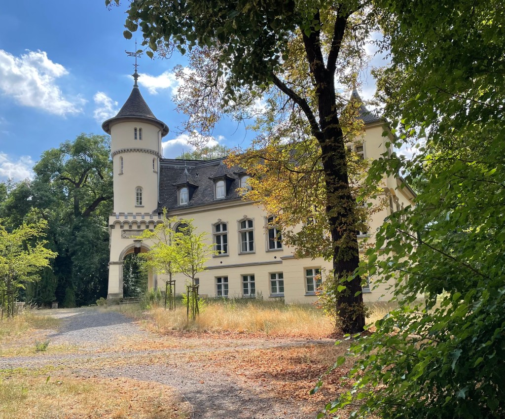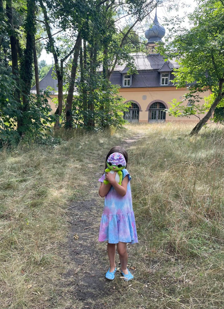 Ich konnte L überreden, mit mir am späten Nachmittag auf Entdeckungstour zu gehen. L entdeckte schnell einen Geheimweg und so fanden wir uns wenig später auf einem großen parkähnlichen Gelände wieder, auf dem ein hübsches Schloss und viele Nebengebäude stehen. Vor einigen Jahren muss dies ein Hotel mit Restaurant und Café gewesen sein. Mittlerweile ist alles verwildert. Es sieht immer noch wunderschön und ein bisschen verwunschen aus.